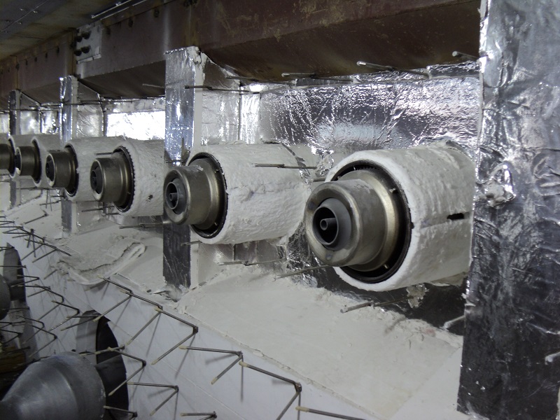 En plantas que producen aceros les damos mantenimiento a hornos de recalentamiento y tratamiento térmico de tipo walkingbeam, suela galopante, suela giratoria, hornos de empuje, hornos “boogiehearth”, fosas, hornos de rolos, y demás hornos.
